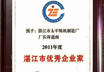 2011年度湛江市優(yōu)秀企業(yè)家榮譽(yù)牌匾2012年3月